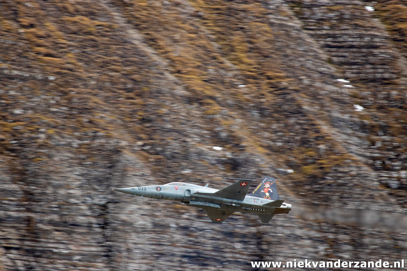 We then waited for the first aircraft to arrive at the Axalp range. The Axalp-Ebenfluh range is a shooting area that was established in 1942. The Swiss Air Force uses this area to practice air-to ground gunnery, during which the Hornets and Tigers shoot their canons on ground targets mounted on the rock face. Every year in October this airshow is organized so that the audinece can also view the shooting exercises. Next to that, other aerial displays are also shown on these days.