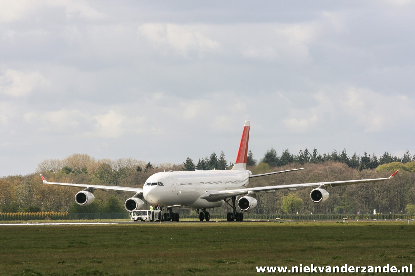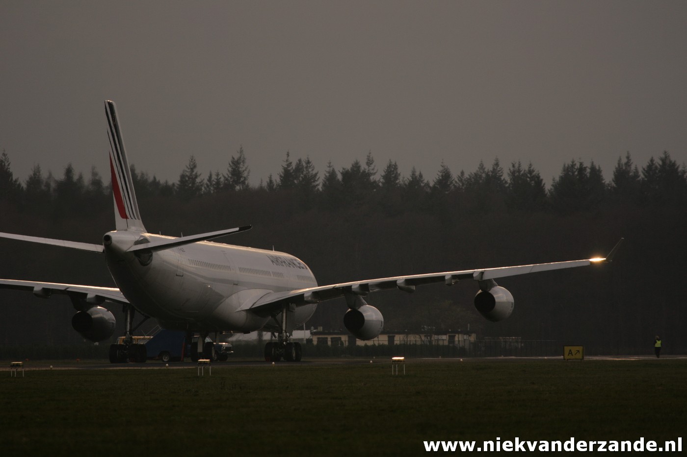 The first aircraft that was scheduled for arrival was Air France’s A.340-311 F-GLZI, which was due to arrive on the 19th of January. This aircraft was ferried from Paris – Charles de Gaulle to Twente Airport, a flight of approximately an hour. Due to a combination of strong winds and low ceiling, the flight was postponed several times on this day, after which the Airbus finally arrived at quarter to four. At that time, there was no longer a tow truck driver available, so that the aircraft was parked at Twente’s Runway 05 end. This was something that was appreciated by many aviation enthusiasts, but less by the members of the flying club. They could not use the 3km runway that weekend.