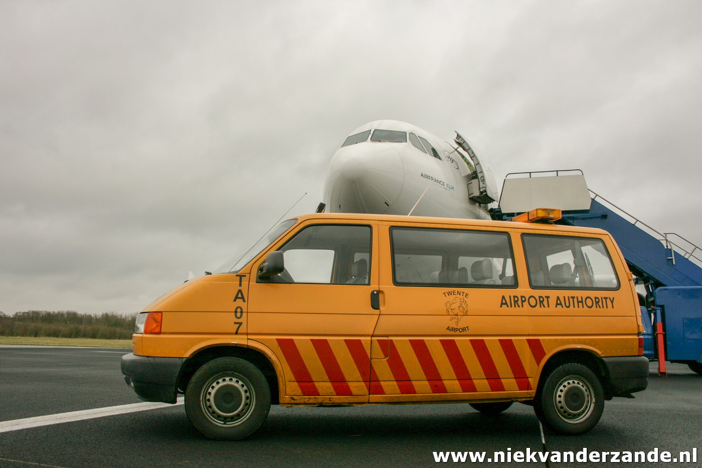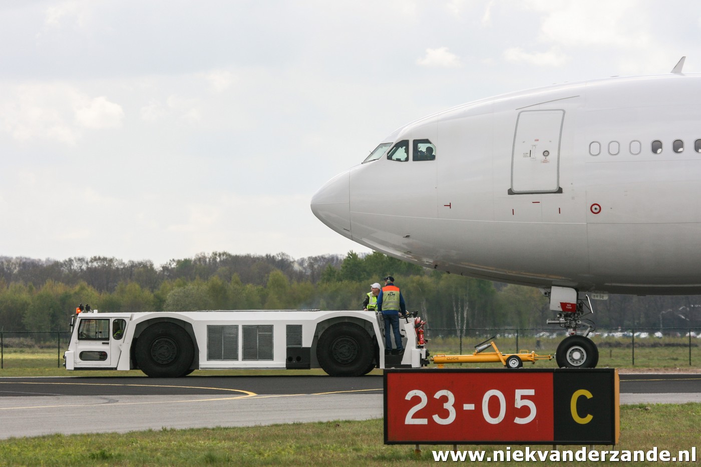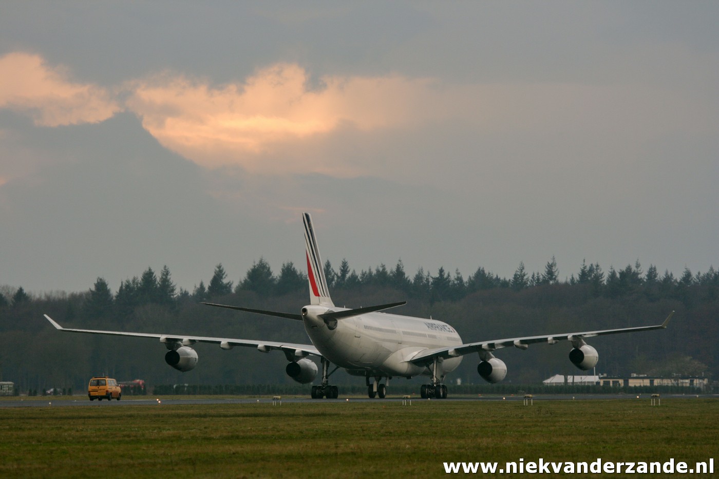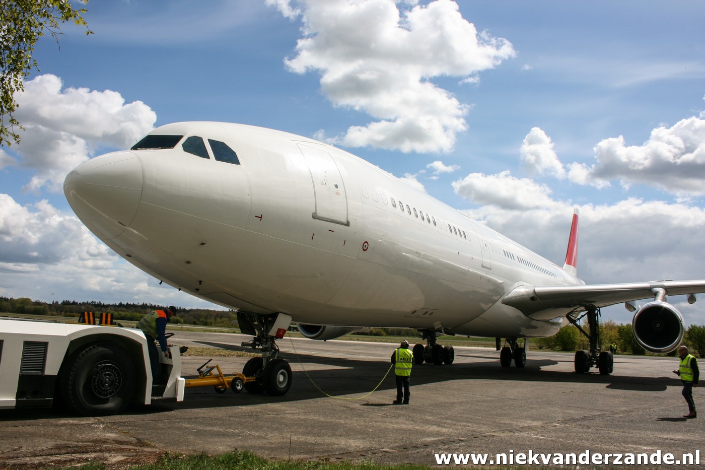 The first aircraft that was scheduled for arrival was Air France’s A.340-311 F-GLZI, which was due to arrive on the 19th of January. This aircraft was ferried from Paris – Charles de Gaulle to Twente Airport, a flight of approximately an hour. Due to a combination of strong winds and low ceiling, the flight was postponed several times on this day, after which the Airbus finally arrived at quarter to four. At that time, there was no longer a tow truck driver available, so that the aircraft was parked at Twente’s Runway 05 end. This was something that was appreciated by many aviation enthusiasts, but less by the members of the flying club. They could not use the 3km runway that weekend.