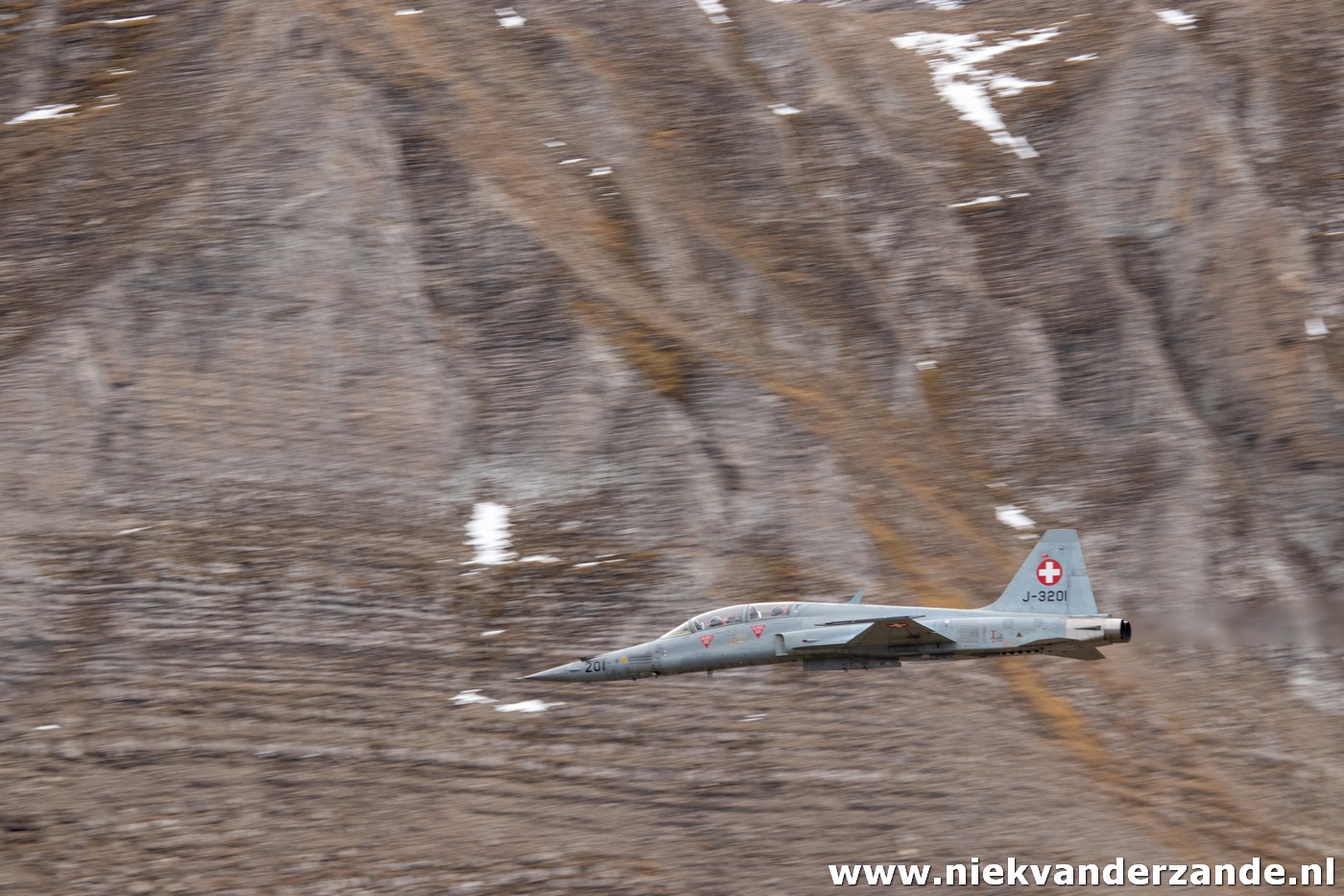 Once the Hornets had finished their part of the fun, it was time for the F-5 Tigers. The shooting from the Tigers was te main reason why I came here, as this was the final time that the F-5s would shoot their cannons at the Axalp Range. The F-5 will finally be withdrawn from service in 2026 (a replacement is currently being sought), but will already be disarmed this year. From then on, the F-5 will only act as an Agressor aircraft and will still perform target towing duties. The F-5 pilots surely wanted to leave in style, as already during the practice runs they showed up from behind the audience and shot their guns at the same moment. Compared with the full afterburners, this scared the hell out of you.