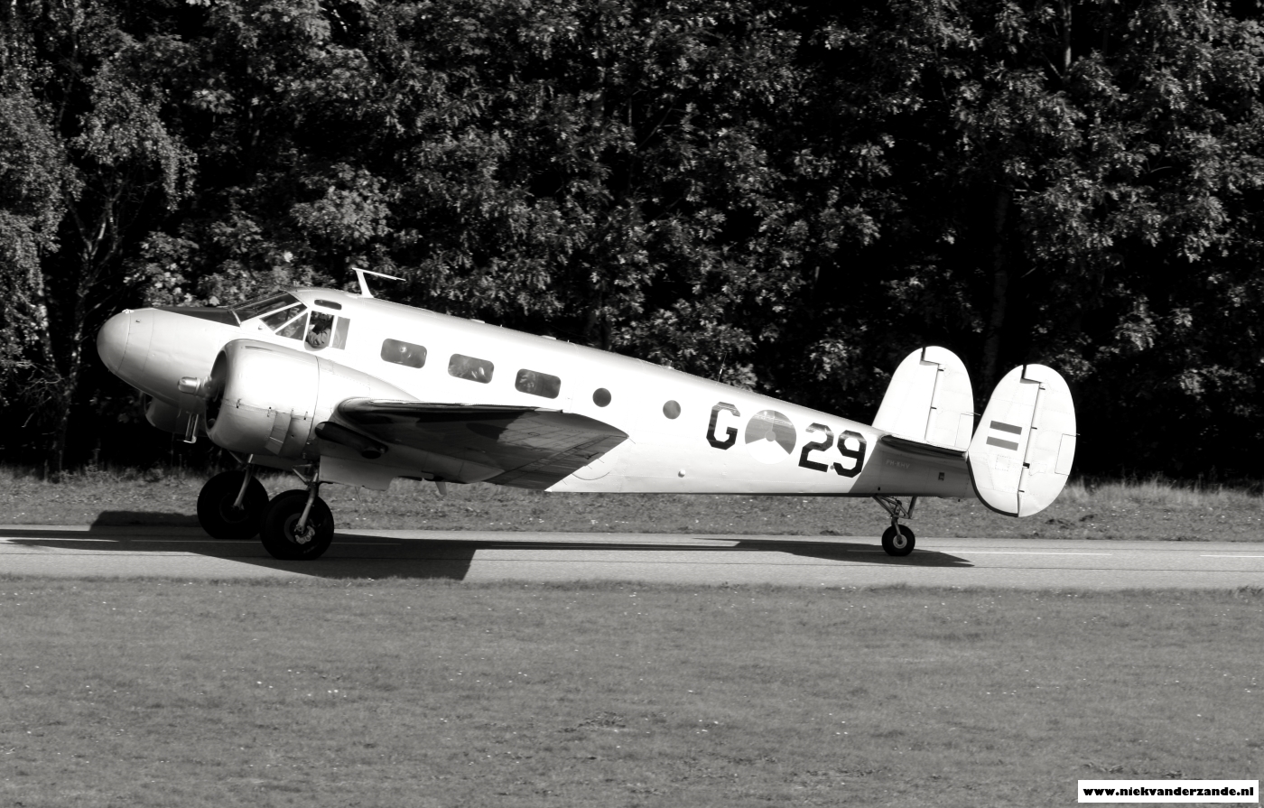 The Beech 18 being put through her paces overhead Gilze-Rijen airbase