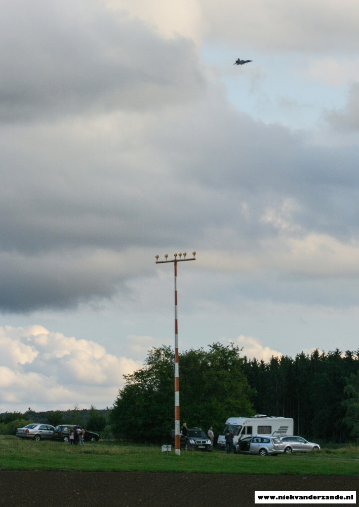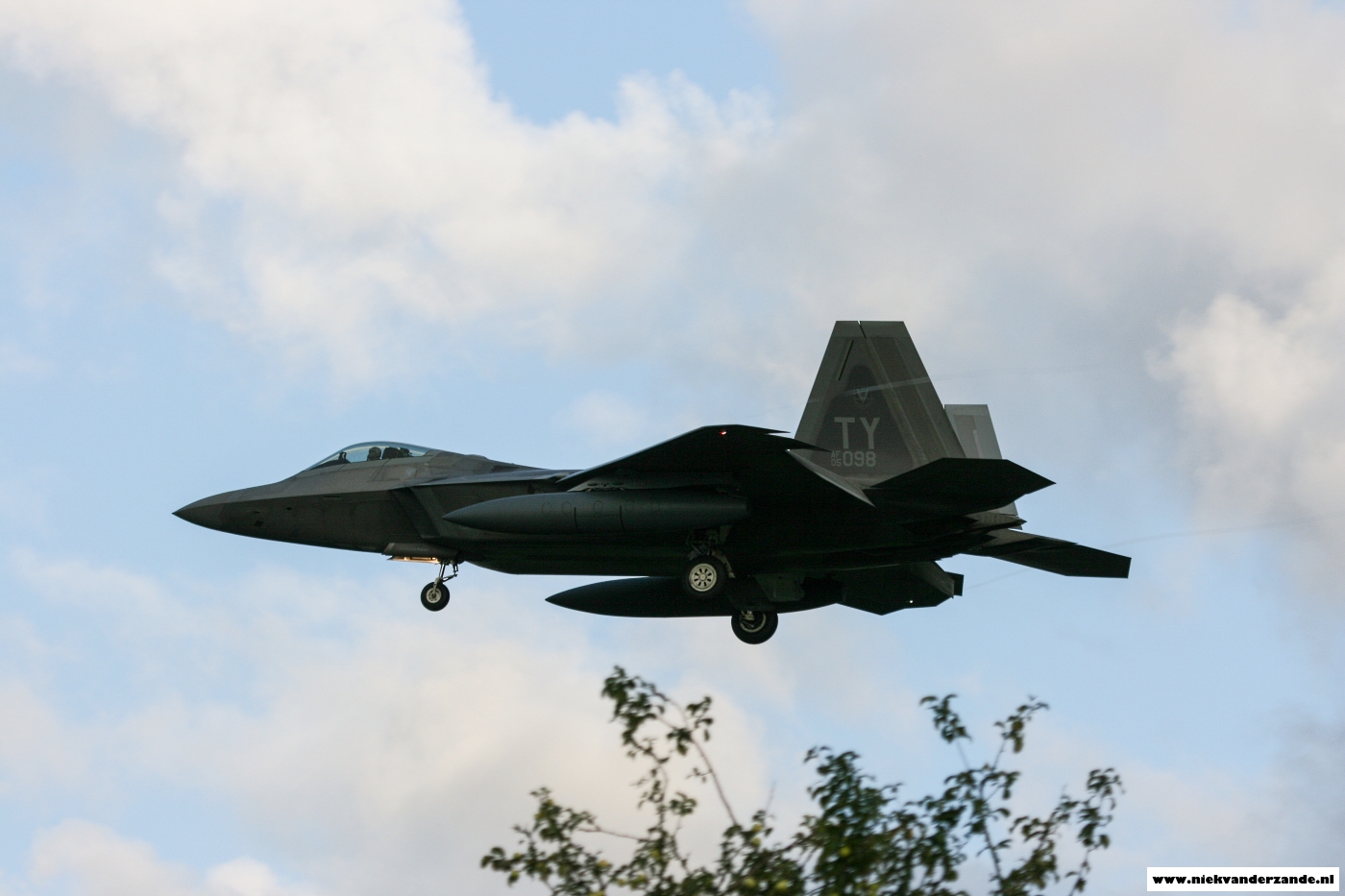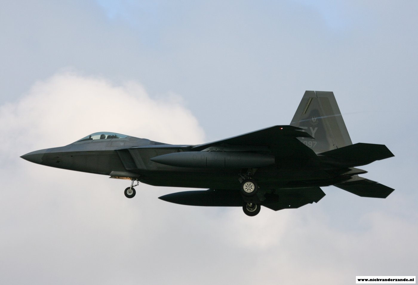 One of the four F-22 Raptors landing at Spangdahlem’s Runway05.
