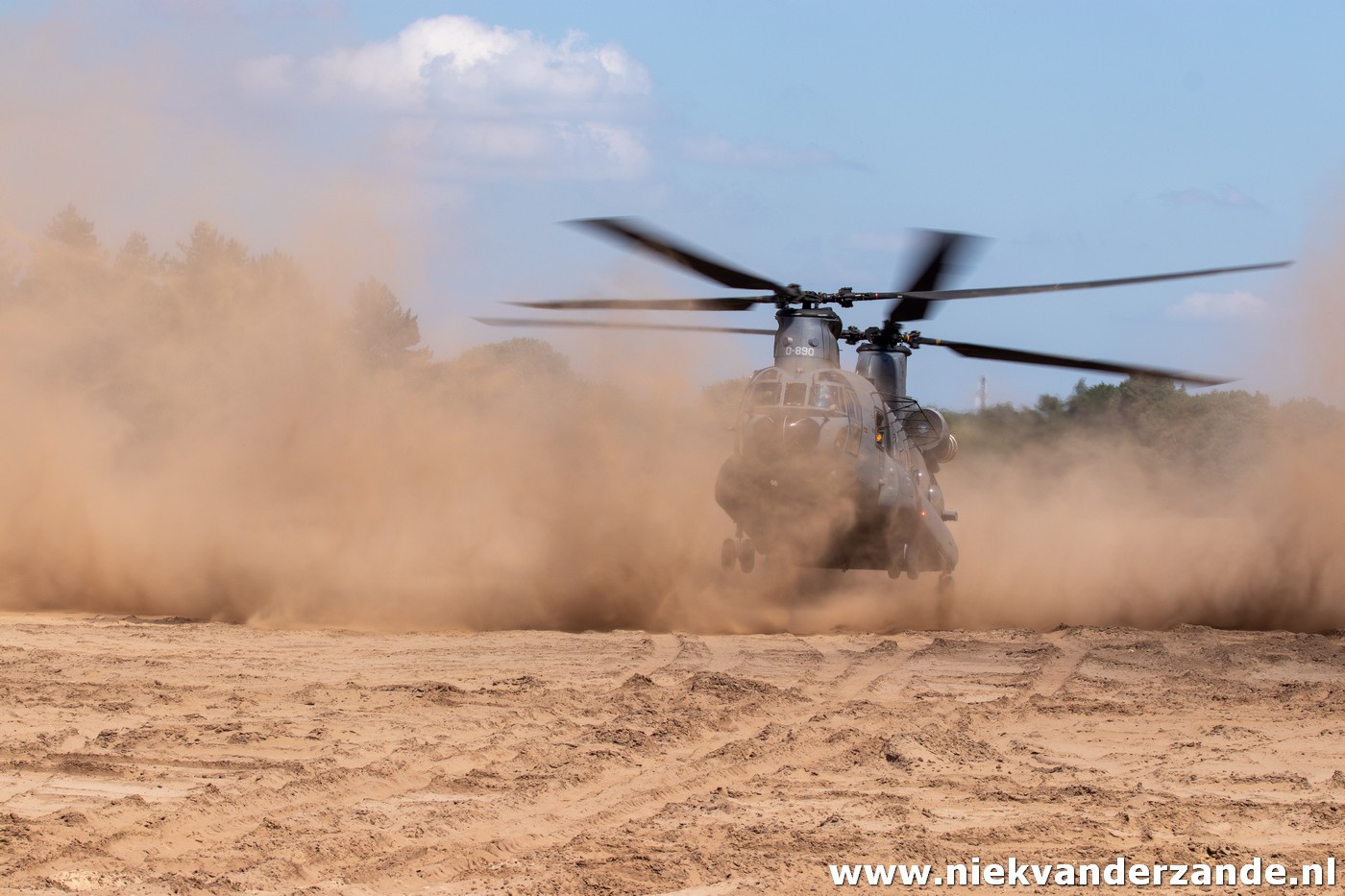 The Chinook was the first helicopter to arrive in the morning. After some exercises further away, the crew moved to the area where I was located. This meant they came very close, which resulted in very nice photo opportunities. After about 40 minutes the Chinook left for Gilze-rijen, returning later in the afternoon.
