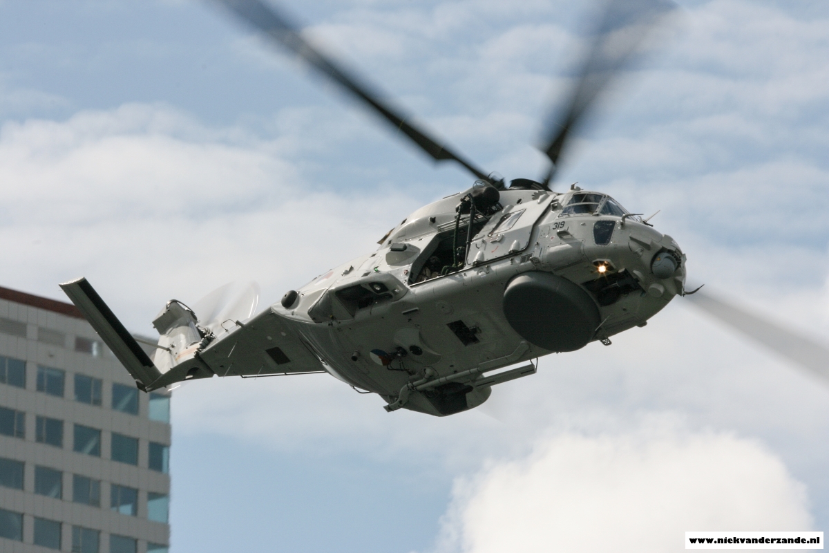 Several large buildings caused an unusual backdrop for this NH-90, which would normally operate over sea