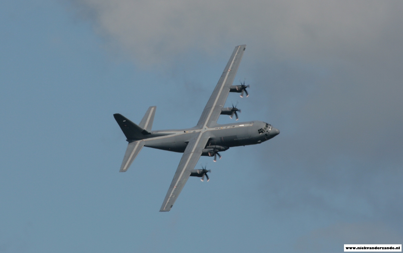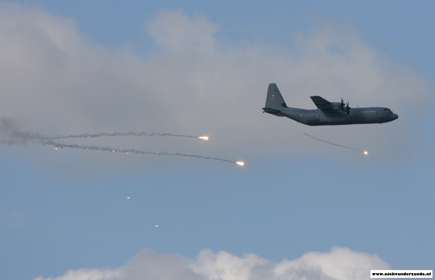 A Danish C-130J deploys flares over the Meppen Range