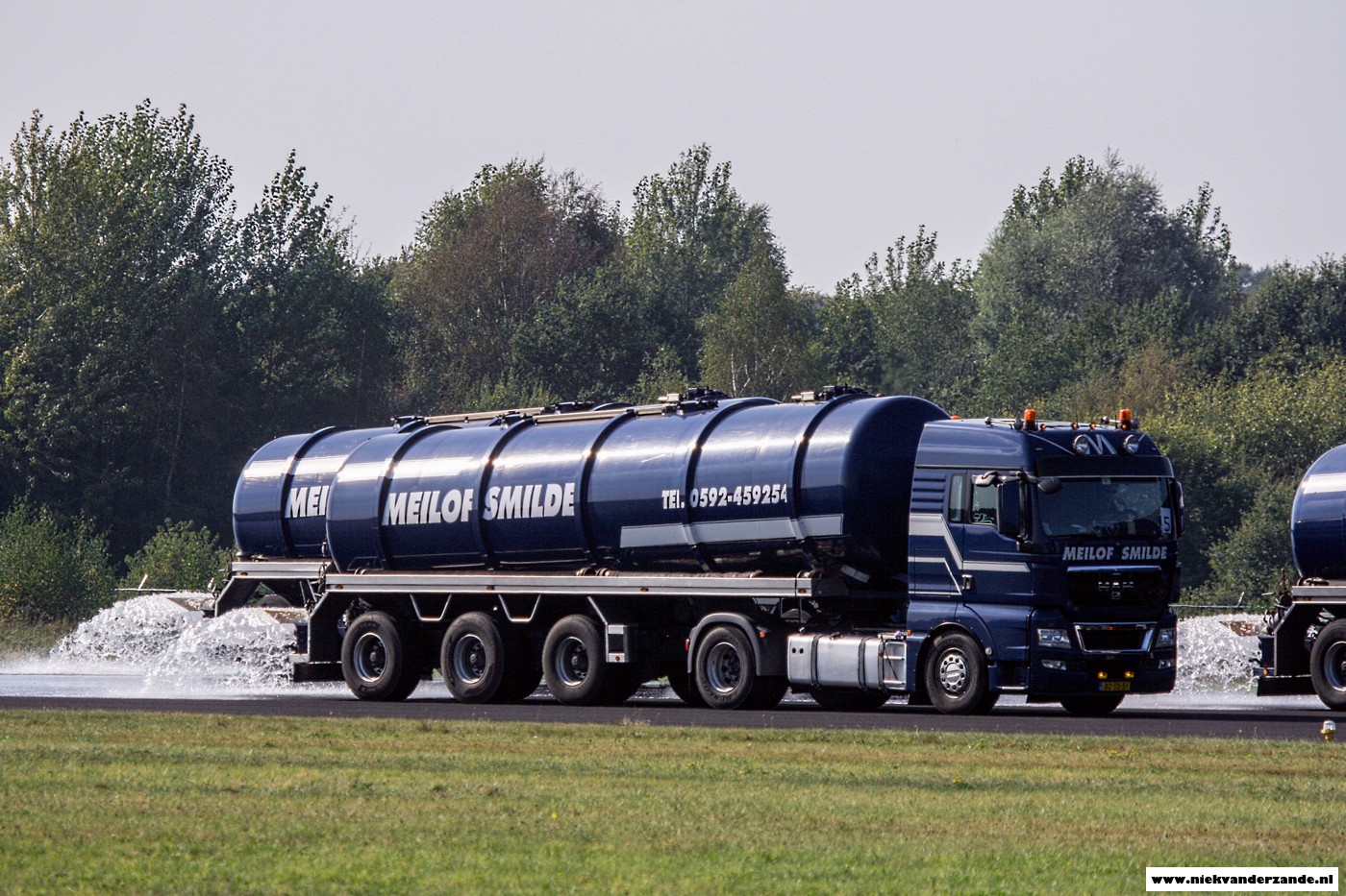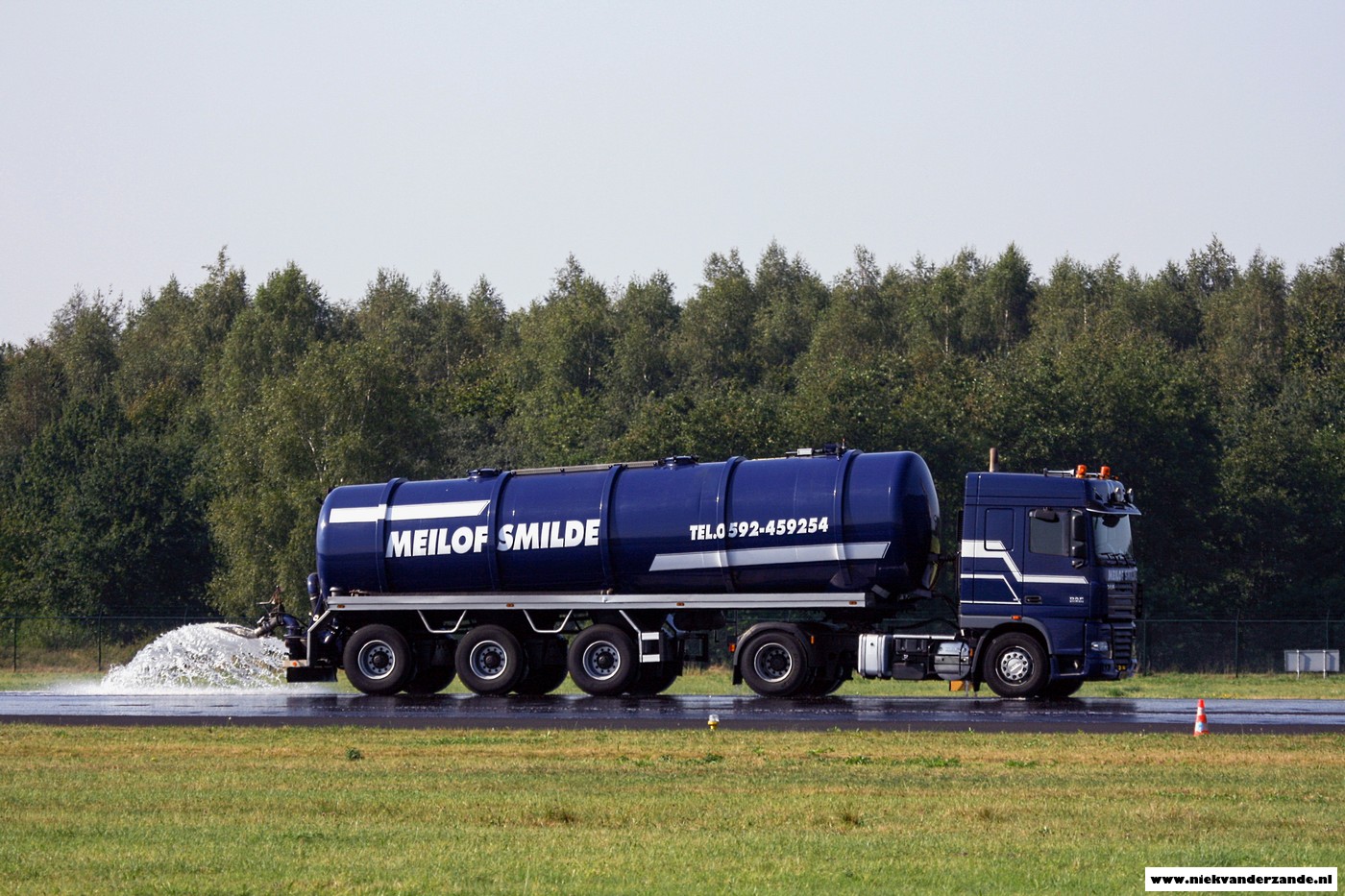 The top layer, Antiskid from the Possehl company, increases security when landing on a wet runway. These tests are held to measure exactly what the friction of the runway is in rainy conditions. The runway will be soaked with the use of six large tanker trailers that will spray a large amount of water on the runway. The testplane will then land shortly after.