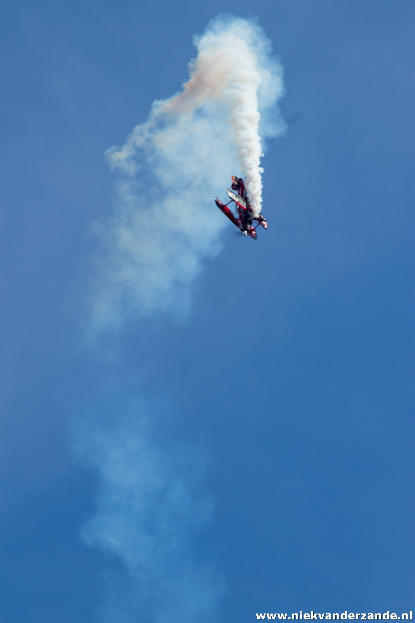 In the afternoon between 13.30 and 15.00, the airshow took place. This show was opened with an 18-person parachute jump, where the parachutists landed in front of the crowdline. Then the flying display started with shows from the Dutch Thunder Yaks, Fokker Four, Pitts Special and a P-51 Mustang.